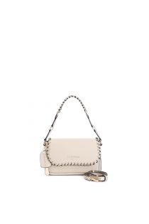 bolso con solapa con enhebrado, asa trenzada, colgante de helado y bandolera sand