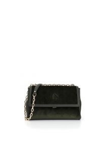 Bolso con solapa de terciopelo y logotipo en relieve. doble compartimento y bolsillo interior con cremallera. placa metálica con logotipo cafènoir en el lateral. bandolera con cadena deslizante para llevar al hombro.