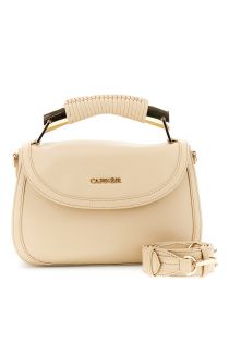 bolso con solapa efecto piel, asa metálica y hilo decorativo. cream
