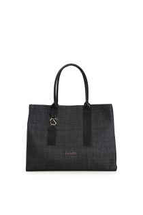 bolso cuadrado con asas a juego y accesorio cafènoir black