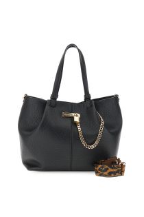 Bolso de compras con efecto piel granulada, cadena con logotipo y candado. Correa de hombro extraíble con cinta animalier para un look atrevido y ultrafemenino.