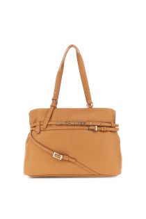 Bolso de compras de piel sintética granulada con asas ajustables, correas con inscripción Café Noir y hebillas decorativas. Interior espacioso con compartimento y cremallera.