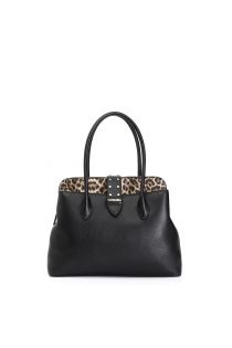 Bolso shopping rígido con división con cremallera y estampado. bolso acompañado con hebilla con micro tachuelas doradas.