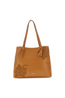 bolso de compras de imitación de piel con aplicaciones florales hazelnut