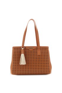 bolso de compras en material efecto piel con elegante perforación geométrica en la parte delantera. tan