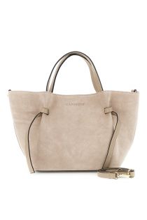 bolso de gamuza, sin forro, con bolsa interior y correa de hombro extraíble. powder