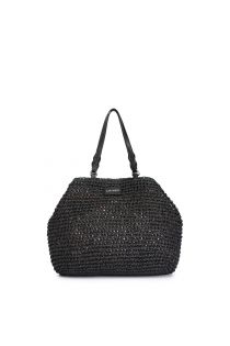 Tote de hombro hecho a mano en crochet cierre magnético y trabilla con mosquetón en las caderas etiqueta con logo en relieve y lámina dorada.