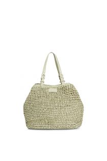 Tote de hombro hecho a mano en crochet cierre magnético y trabilla con mosquetón en las caderas etiqueta con logo en relieve y lámina dorada.
