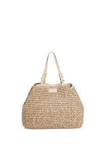 Tote de hombro hecho a mano en crochet cierre magnético y trabilla con mosquetón en las caderas etiqueta con logo en relieve y lámina dorada.