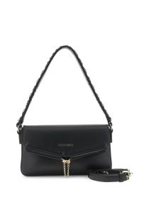 Elegante bolso de hombro con solapa estructurada y cierre magnético. el diseño está adornado con una cadena metálica y un asa trenzada con detalle de cadena. amplio versátil y perfecto para looks de día y de noche. dimensiones: 27 cm (largo) × 15 cm (alto) × 7 cm (fondo).