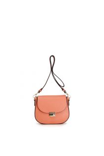 bolso de hombro con solapa de cuero y cierre de estrás salmon