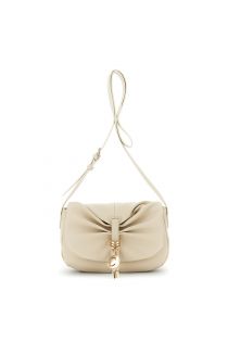 bolso de hombro con solapa efecto piel martillada y charm con logo sand