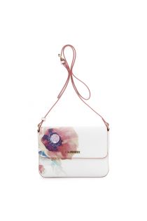 bolso de hombro con solapa en material efecto piel con estampado de macroflores poppy red