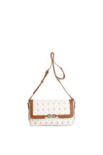 bolso de hombro con solapa monogram, ribetes en contraste y logo tan