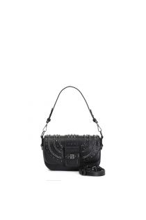 Bolso de hombro con tachuelas y cadenas. placa metálica con logotipo cafènoir. cierre doble con cremallera magnética. bolso con bandolera ajustable.