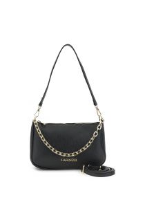 Bolso de hombro de piel con un diseño compacto y elegante asa de cadena dorada y correa de hombro extraíble. perfecto para el día a día combina estilo y practicidad con cierre de cremallera y logotipo frontal. dimensiones: no disponibles.