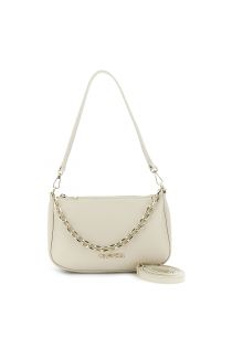 Bolso de hombro de piel con un diseño compacto y elegante asa de cadena dorada y correa de hombro extraíble. perfecto para el día a día combina estilo y practicidad con cierre de cremallera y logotipo frontal. dimensiones: no disponibles.