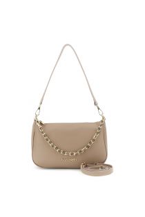 bolso de hombro de piel con asa de cadena dorada nude