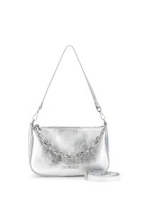 bolso de hombro de piel laminada con asa de cadena dorada silver