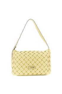 bolso de hombro de tejido efecto napa con letras metálicas yellow