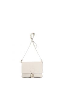 bolso de hombro dollar de piel con solapa y bandolera ajustable cream