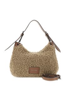 Bolso de hombro de tela rizada con detalles efecto piel en contraste. Placa frontal con detalles de hilo y logotipo. Correa de hombro extraíble para llevarlo dos veces.