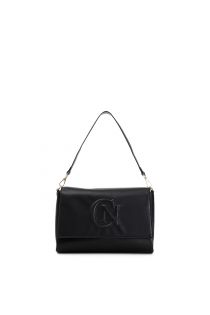 Bolso de hombro modelo saco realizado en material blando con solapa con logotipo cafènoir en relieve.
