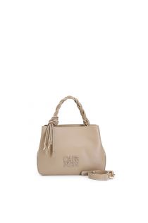 bolso de mano con asa trenzada y logo rectangular tono sobre tono tortora