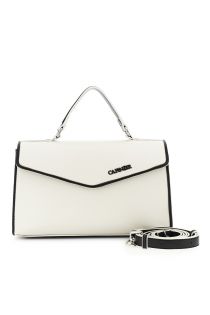 bolso de mano con solapa, asa acolchada y bolsillo trasero. white