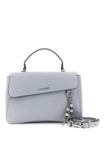 bolso de mano con solapa efecto piel granulada y charm con logo colorido sky