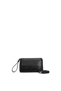 Bolso de mano con solapa. logo cafènoir en pedrería bicolor. el reverso es efecto espejo. asa y bandolera.
