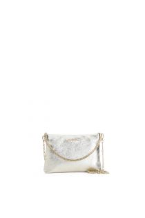 bolso de mano de piel laminada con bandolera de cadena light gold