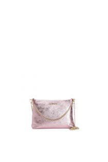 bolso de mano de piel laminada con bandolera de cadena pink
