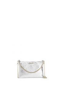 bolso de mano de piel laminada con bandolera de cadena silver