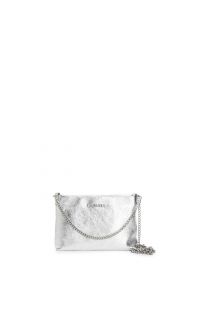 bolso de mano de piel laminada con bandolera de doble cadena silver