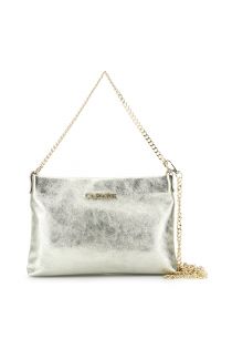 bolso de mano de piel metalizada, bandolera y asa con cadena y mosquetones light gold