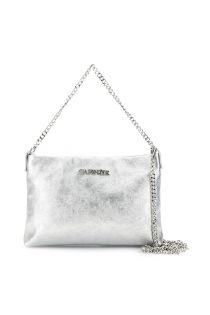 bolso de mano de piel metalizada, bandolera y asa con cadena y mosquetones silver