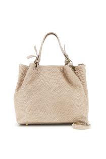 bolso de mano de piel tejida con dije de metal y correa de hombro extraíble. powder