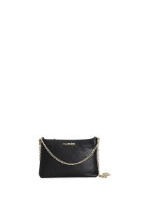 bolso de mano de piel texturizada con bandoleras de cadena black