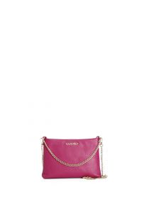 bolso de mano de piel texturizada con bandoleras de cadena hot pink