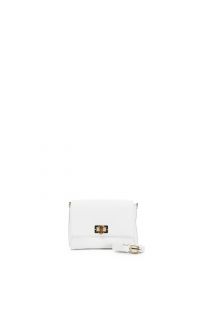 bolso de mano de piel texturizada con cierre de metal y bambú white