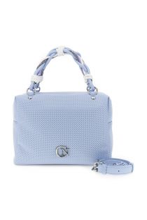 bolso de mano efecto napa con microperforaciones y logotipo metálico. mauve