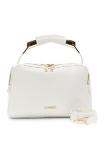 bolso de mano efecto piel con asa de metal y hilo decorativo. white