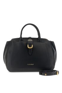 Bolso de mano sin forro en piel saffiano. Bolsillo frontal plano con detalle metálico dorado. Logotipo grabado y bandolera extraíble.