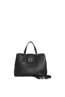 bolso de mano en auténtica piel martillada con logo de metal. black