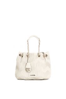bolso de mano plisado con cadena y parche portaplaca y charm cafènoir ivory