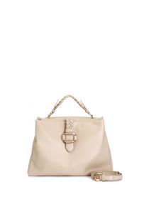 bolso de mano suave con asa trenzada, hebilla y bandolera extraíble. beige