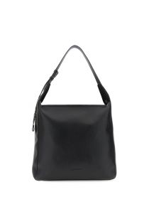 Bolso de hombro de piel sintética granulada con asa ajustable y letras metálicas grandes. Amplio bolsillo interior plano y práctico cierre.
