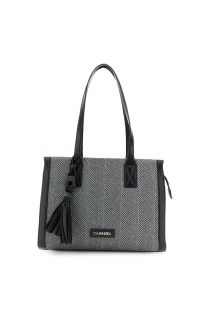 bolso de tela tweed con borla y detalle de logotipo black