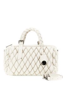 Bolso satchel efecto napa con acabado acolchado en relieve, asas trenzadas ajustables y un colgante con el logotipo. Cuenta con una correa de hombro extraíble para llevarlo dos veces.